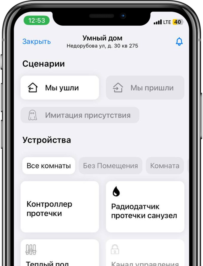 Вы можете управлять своей квартирой через мобильное приложение UJIN, голосовое управление или с помощью настроенных сценариев